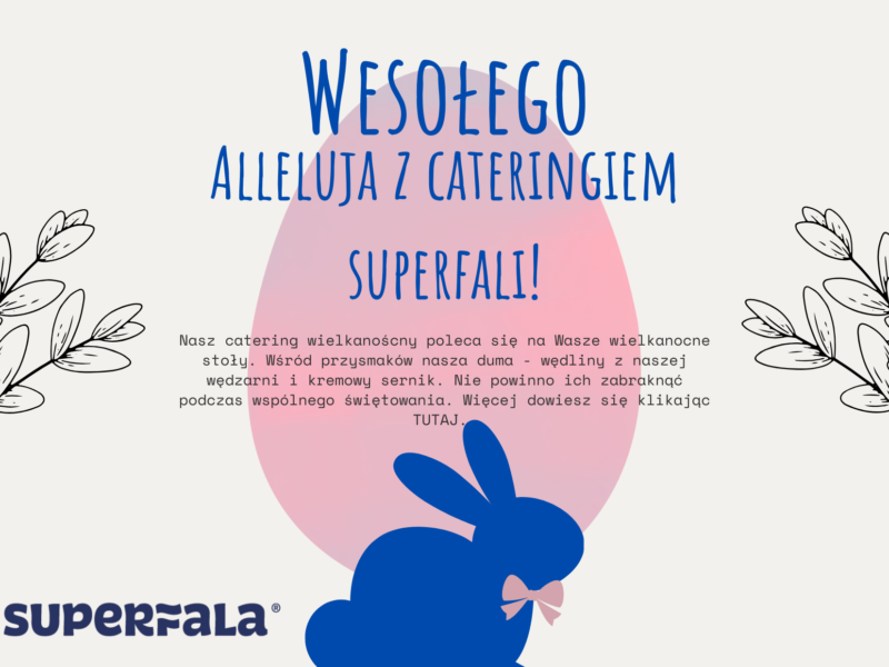 Jak co roku, z okazji Świąt Wielkanocnych, przygotowaliśmy dla Was nasz wyjątkowy świąteczny catering. Wszystkie dania sporządzone są według tradycyjnych receptur, z dbałością o jakość produktów. Dania na polskie stoły powstają w Restauracji SUPERFALA. Zgodnie z oczekiwaniami naszych Gości – także i tym razem…
