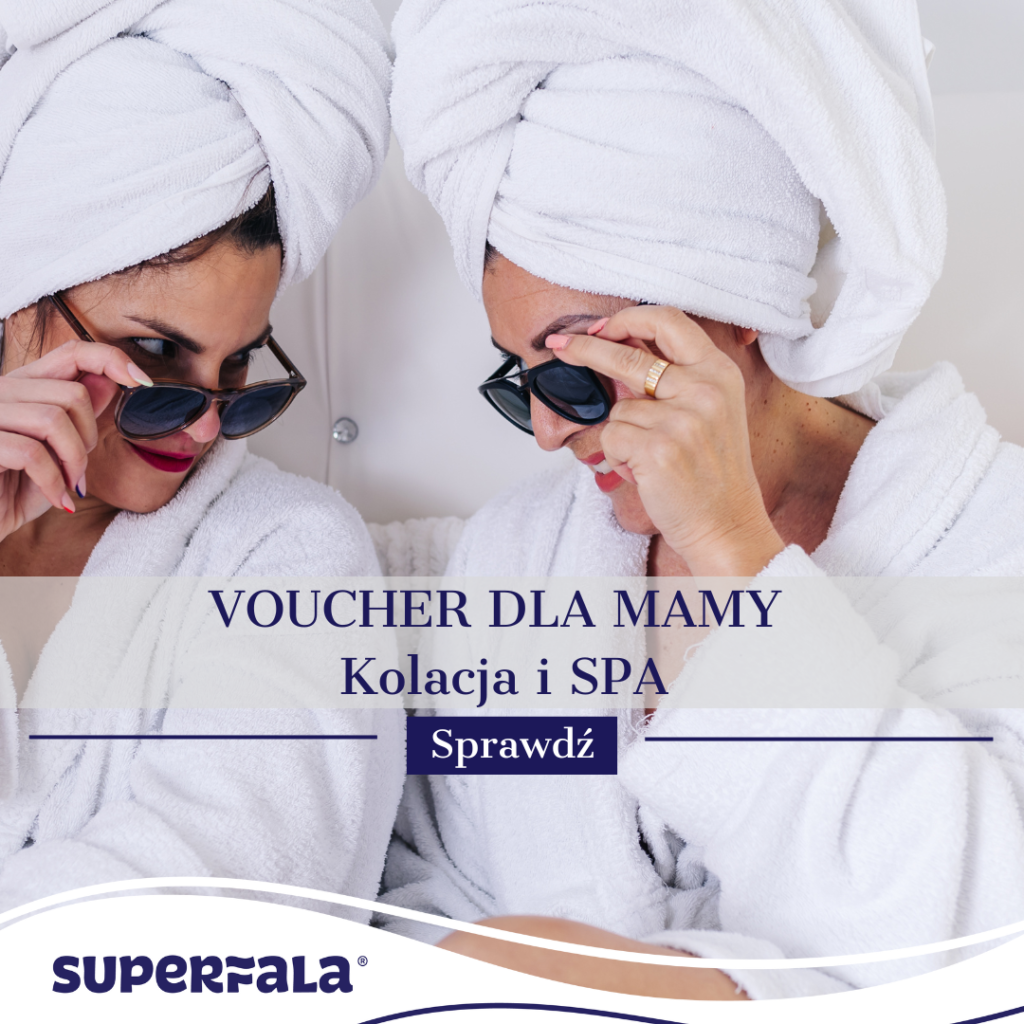 Dla Niej wszystko warto – na Dzień Matki przygotowaliśmy specjalną ofertę – voucher w cenie 150 zł za godzinę pobytu w SPA Hotelu Superfala i dwudaniową kolacje z lampką wina w naszej restauracji. Voucher dla Mam można zakupić w Recepcji Hotelu Superfala do 27 maja włącznie. Co ważne – każda właścicielka takiego vouchera może go wykorzystać do końca 2024 roku.